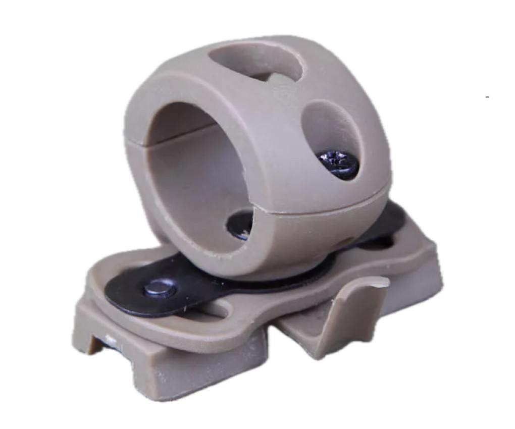 Изделие предназначено для крепления на боковые рельсы тактического шлема. Зажим обеспечивает надежную фиксацию тактических аксессуаров любых размеров.