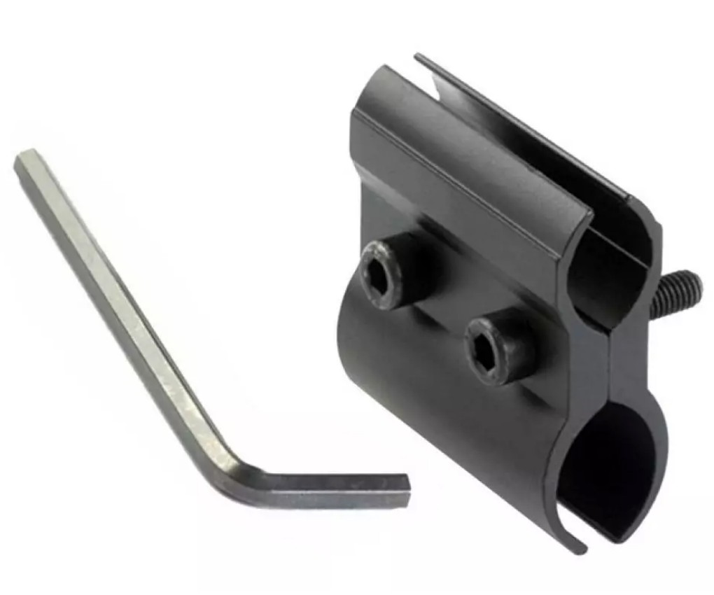 Кронштейн от фирмы Anbison Sports предназначен для крепления подствольного тактического фонаря либо ЛЦУ непосредственно на ствол страйкбольного оружия. Для изменения диаметра посадочного места кронштейна под необходимый размер ствола имеются регулировочные винты.
