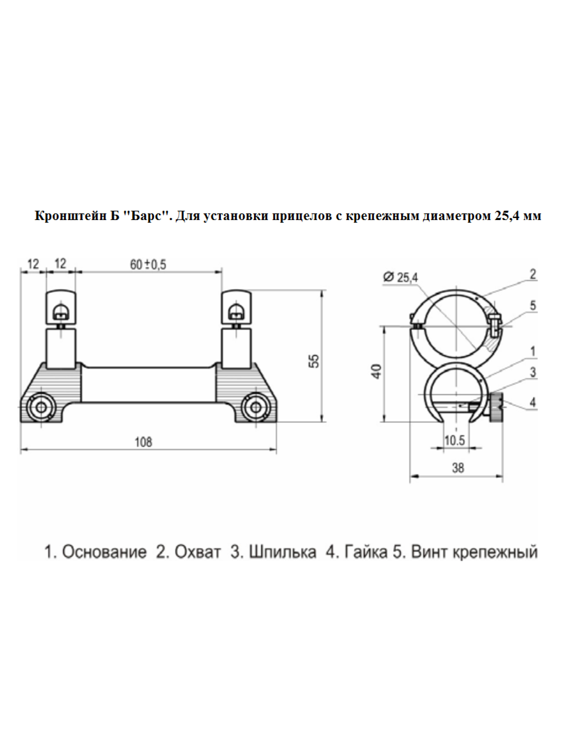 Предназначен для установки оптических прицелов на карабины типа «Барс» и другие, имеющие верхнюю планку типа «ласточкин хвост». Одновременно можно пользоваться оптическим и открытым прицелом.