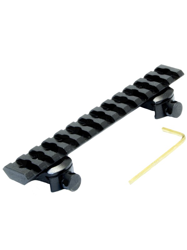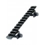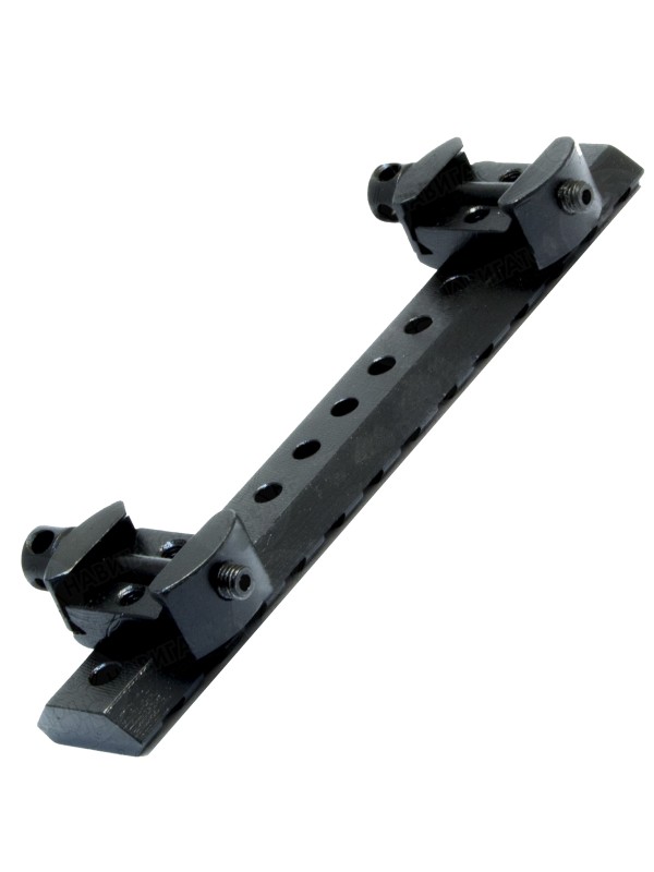 База имеет возможность перестановки стоек с шагом 10 мм для установки на оружие и регулировку выноса базы по оси оружия.