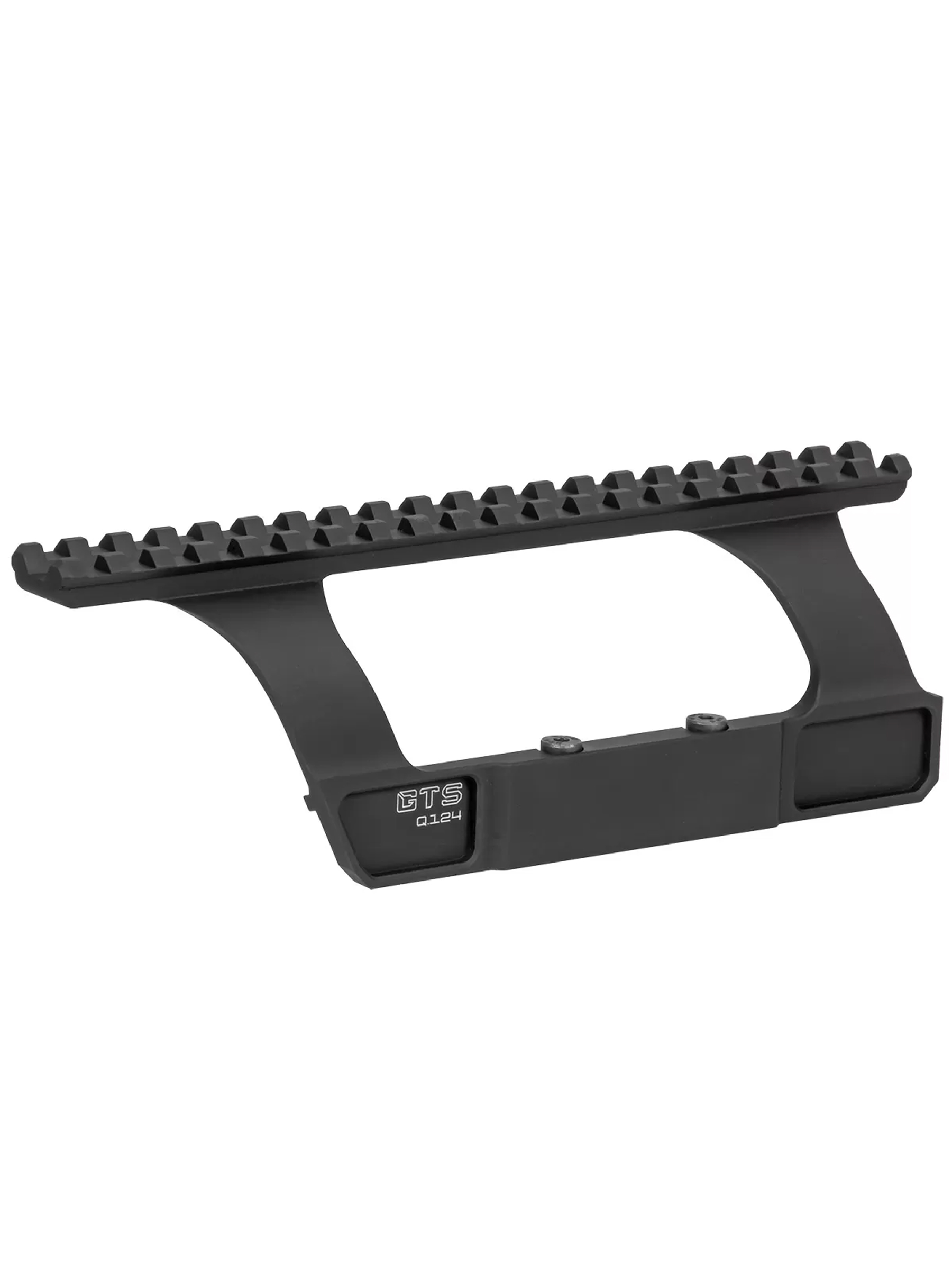 Кронштейн GTS Q.124 предназначен для установки на любую боковую планку шириной 14 мм и для использования с крышкой ствольной коробки без планки Пикатинни. Конструкция имеет торцевой упор и стальной прижим.