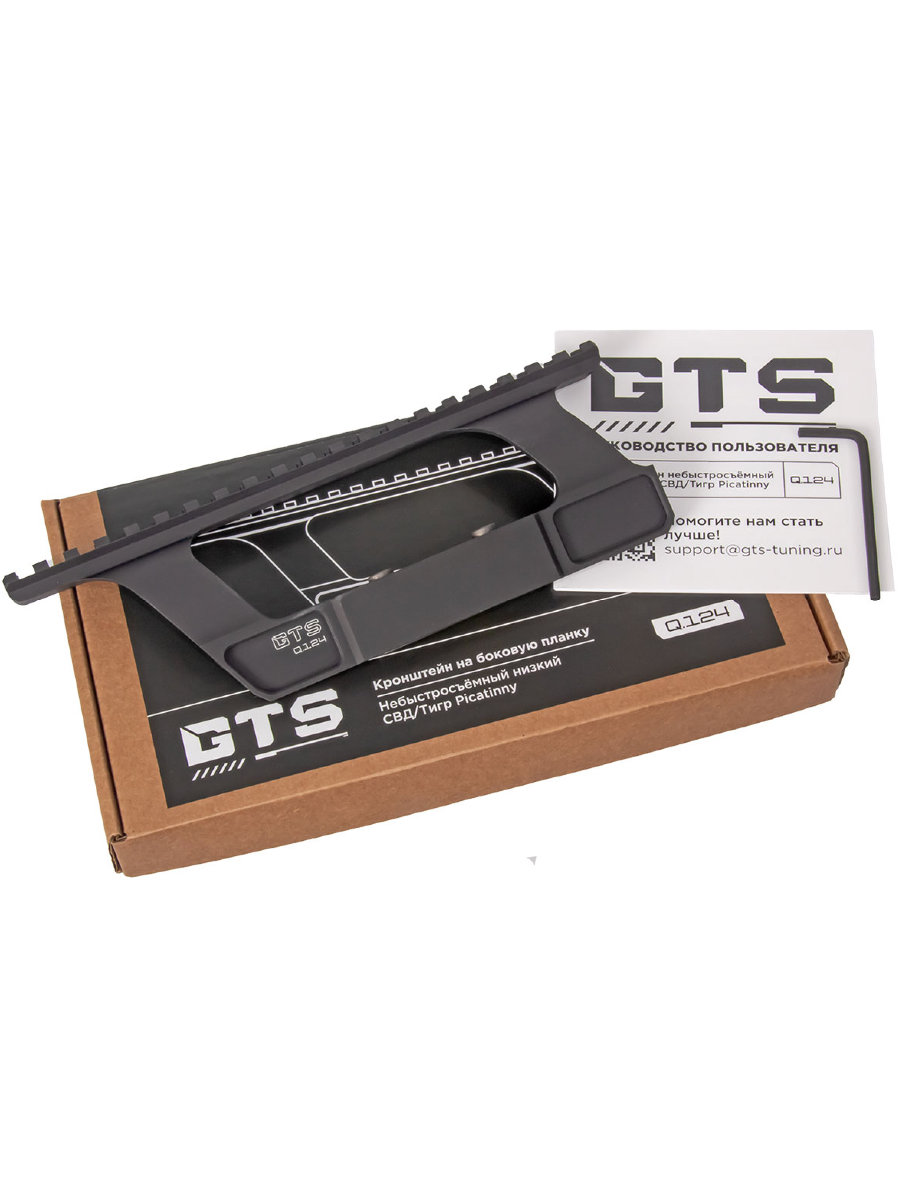 Небыстросъёмный низкий боковой кронштейн GTS Q.124 предназначен для установки оптических прицельных приборов с посадочным интерфейсом MIL-STD-1913 (Picatinny) на карабины на базе СВД/Тигр с боковой планкой.