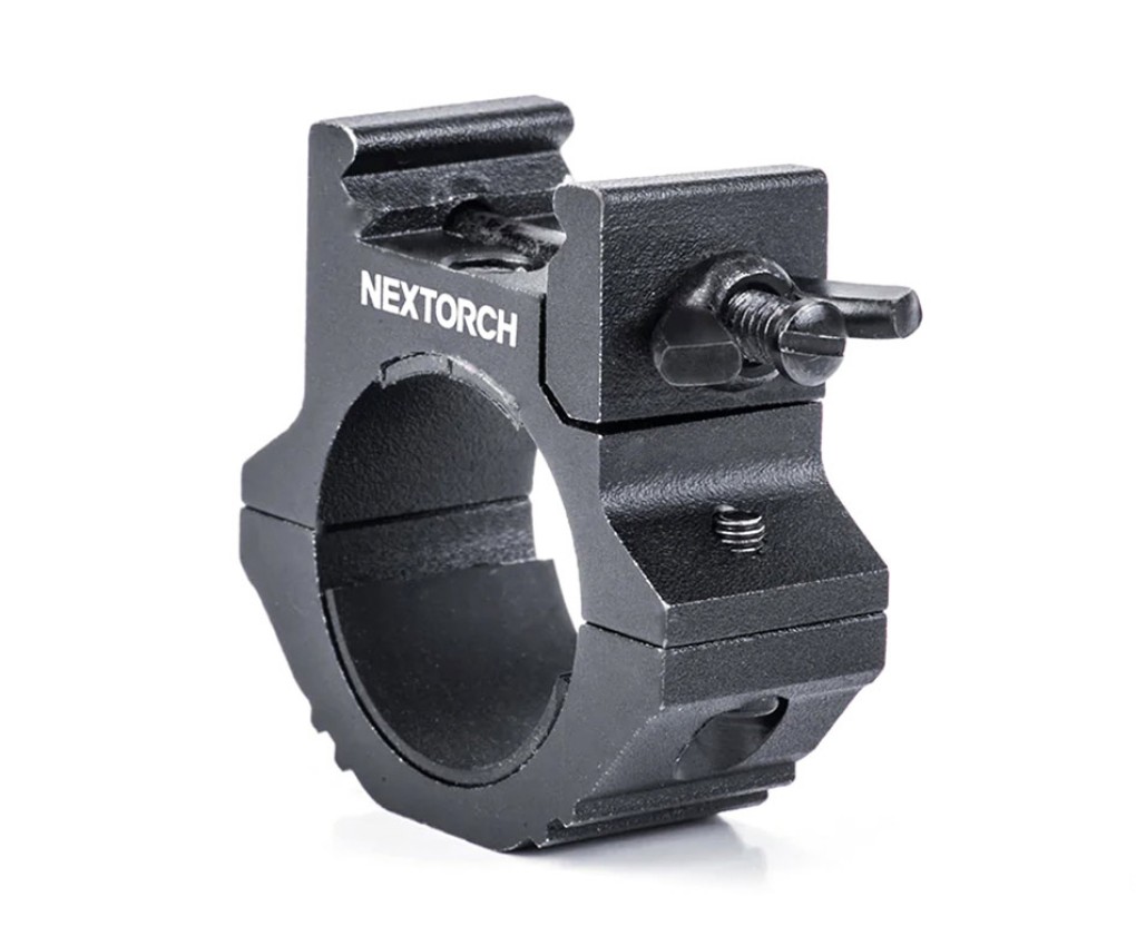 Крепление для фонаря Nextorch RM25S на планку Weaver/Picatinny для использования в качестве подствольного. Быстросъёмное крепление с помощью винта-барашка.