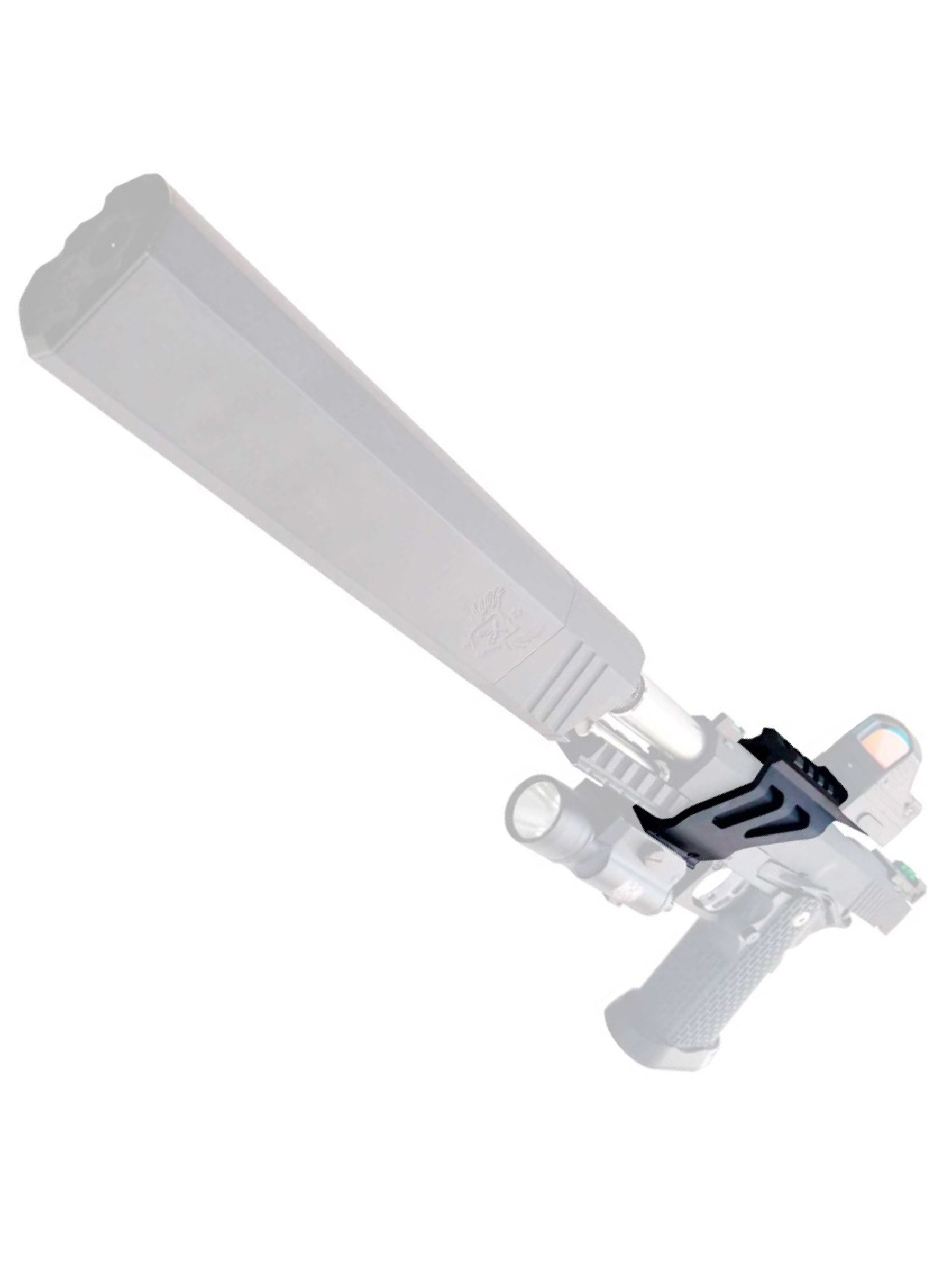 Кронштейн PRM Pistol Mount от компании KJW предназначен для установки на страйкбольные пистолеты моделей KP-05, KP-08, CZ SP-01 Shadow того же производителя. На кронштейне имеется планка Пикатинни для монтажа на нее коллиматорного прицела. В комплекте поставляется крепеж.