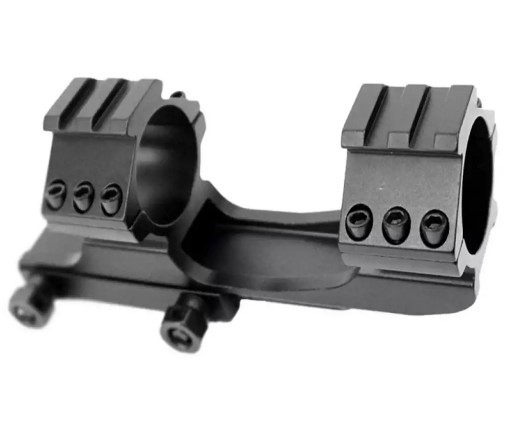 BH-MS46 – высокопрофильный монолитный кронштейн с кольцами, с высотой посадки 20 мм, пригодится для установки оптических и коллиматорных прицелов с размером трубки 34 мм и диаметром объектива до 34 мм, на планку Weaver. Корпус моноблока, длиной 160 мм, с выносом 36 мм выполнен из алюминиевого сплава, поверхность анодирована, устойчива к коррозии. Фиксируется на базе оружия 2-мя стальными винтами. На верхних поверхностях колец имеются планки Пикатинни для крепления дополнительных аксессуаров.