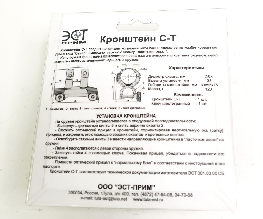 Кронштейн С-Т предназначен для установки оптических прицелов на ружья типа “Север”, имеющие верхнюю планку. При необходимости прицел с кронштейном может быть быстро снят или установлен на оружие. Несомненным достоинством кронштейна является то, что одновременно можно пользоваться оптическим и открытым прицелом карабина.