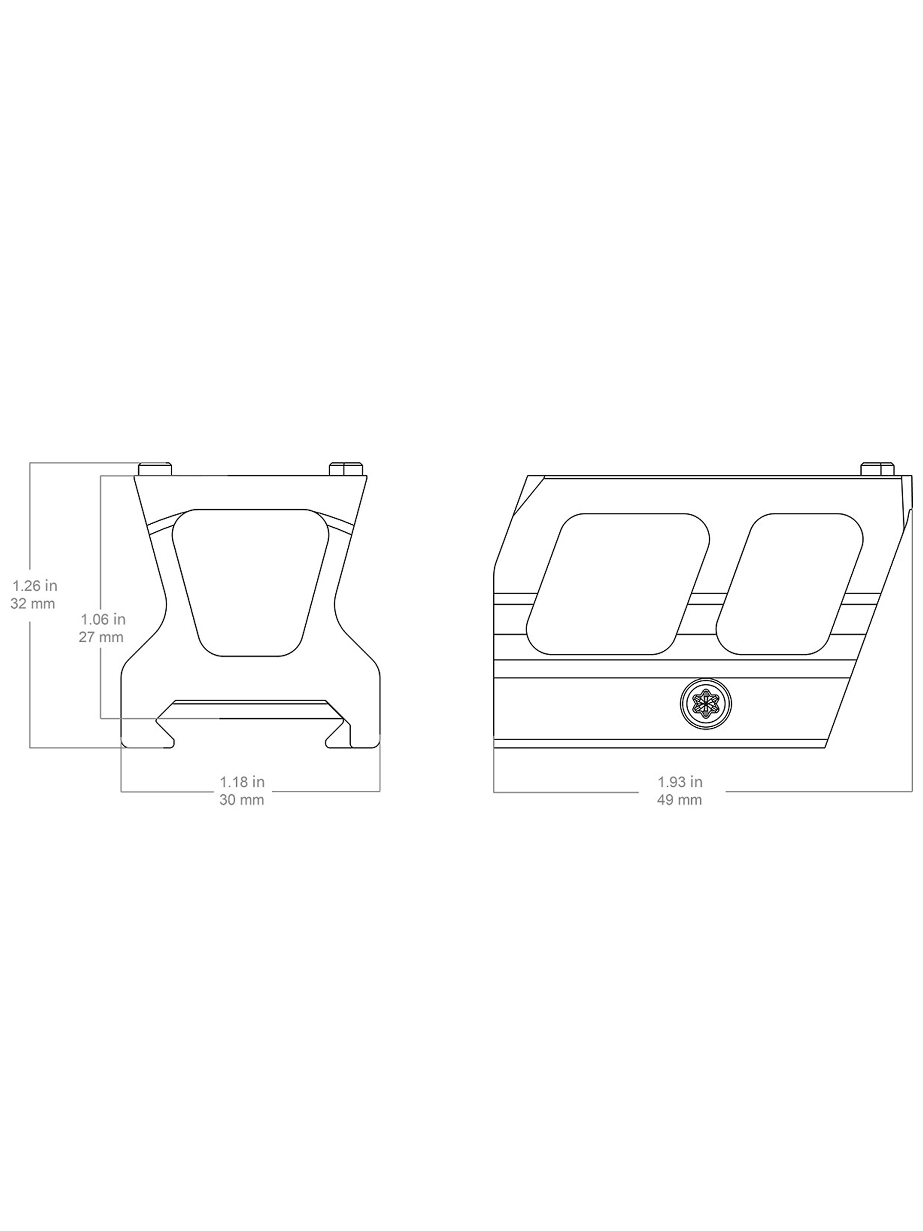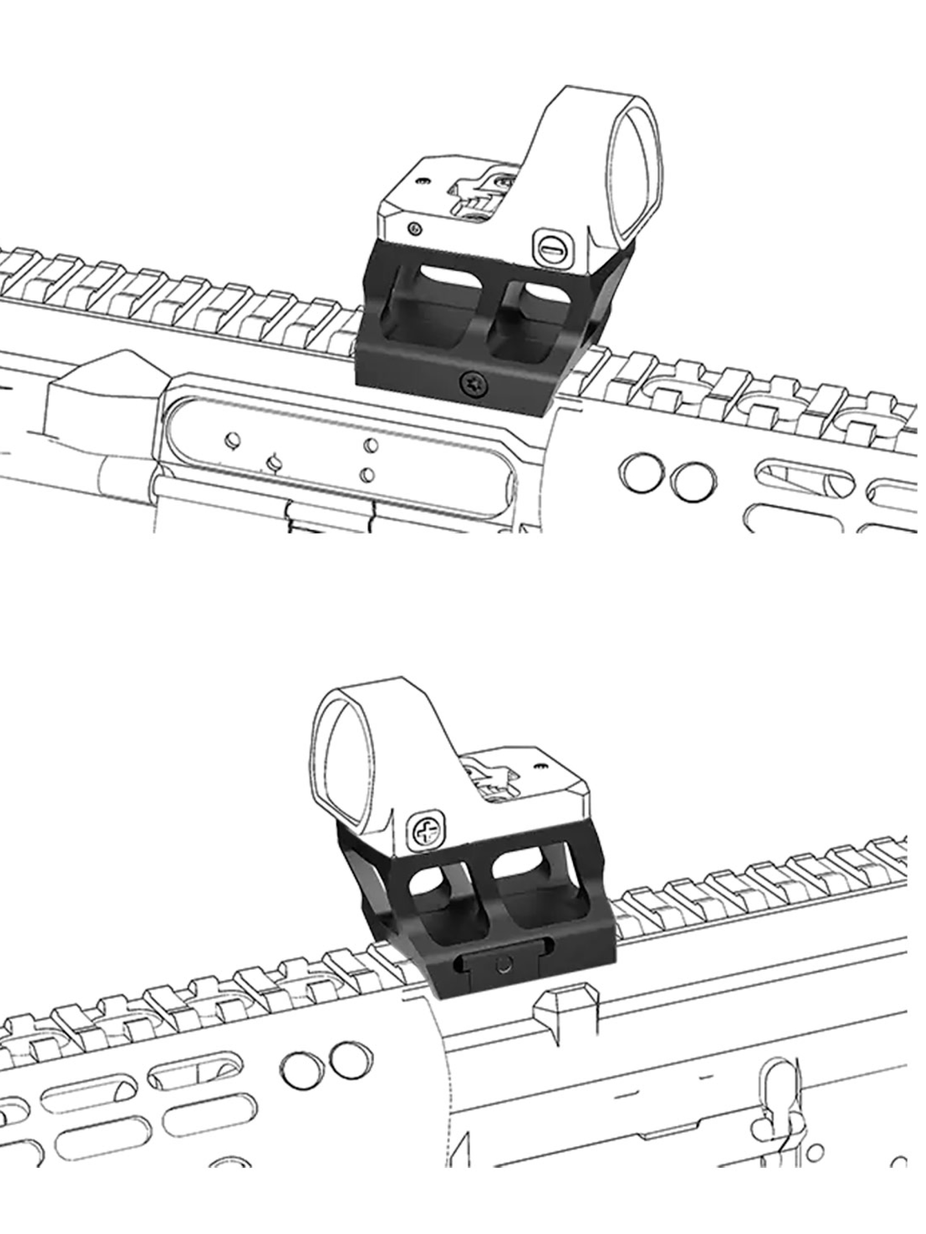 Тоннельная конструкция позволяет пользоваться штатными механическими прицельными приспособлениями оружия. При установке непосредственно на AR высота оптической оси коллиматорного прицела соответствует концепции 1/3 lower co-witness, штатные механические прицельные приспособления занимают нижнюю треть поля зрения коллиматора.
