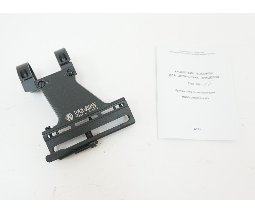 Боковой кронштейн ВОМЗ ВIII-1б (Вепрь,СКС,КО-44) на 30 мм специально разработан для установки любых оптических прицелов с посадочным диаметром 25,4 мм на охотничьи карабины марки Вепрь, СКС и другое совместимое. Кронштейн изготовлен на российском заводе ВОМЗ из высококачественных материалов.