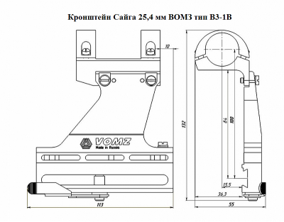 Кронштейн В3-1в разработан российской компанией ВОМЗ для установки прицелов с диаметром трубы 25,4 мм (1 дюйм) на охотничье оружие. Кронштейн выполнен из прочного алюминиевого сплава способного выдерживать большие нагрузки, который также обладает небольшим весом всего 200 грамм делающий его практически незаметным на оружии. Простая, надежная конструкция кронштейна позволит без труда установить на оружие марки Сайга и Вепрь-Хантер.