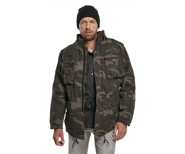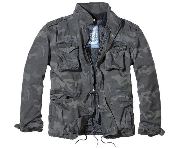 Как характерно для M65, куртка Giant имеет 2 больших нагрудных кармана, 2 просторных передних кармана с клапанами, а так же убирающийся капюшон из хлопка со стяжным шнурком и погоны с кнопками. Оригинальный вид куртке придают многочисленные аппликации, как например, армейские знаки различия на левом рукаве или нашивки на груди.