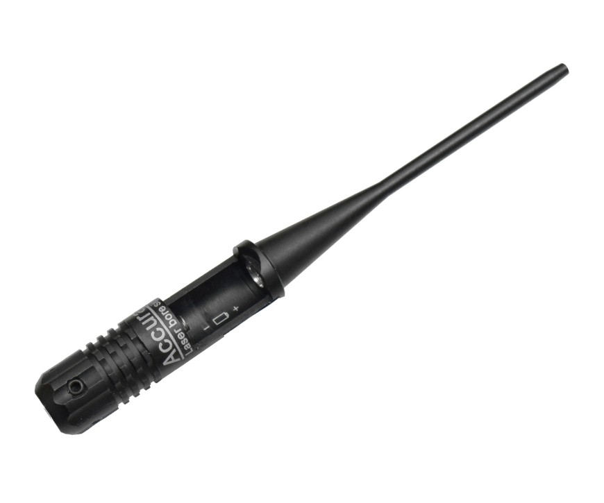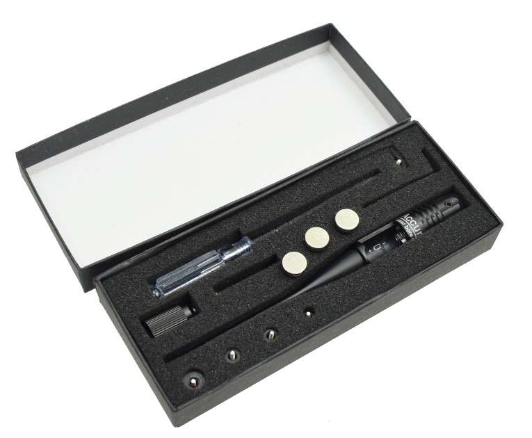 Лазер холодной пристрелки (красный) Laser Bore Sighter используется для точной настройки нуля в оптическом прицеле. После установки в ствол лазерный луч указывает точку попадания, вам останется только внести необходимые поправки в прицеле, чтобы совместить центр прицельной марки с точкой от луча. Патрон включается кнопкой на корпусе. Лазер холодной пристрелки универсальный, подходит для всех калибров от 5,5 мм до 12,7 мм.