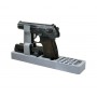 Подставка универсальная для ПМ, ПЯ, п-п КЕДР (пластиковый ложемент) серого цвета. Место для 2-х обойм, пистолета, 42-х патронов. Имеет передвижную опору.