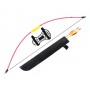 Плечи и рукоятка этого детского лука выполнены из фибергласса, что делает изделие прочным, долговечным и легким. Тетива выполнена из синтетической нити повышенной прочности. Лук имеет яркое, привлекательное для детей исполнение – рукоятка желтая, плечи красного цвета. Длина лука 93 см, вес всего 0,6 кг.
