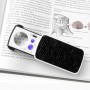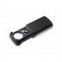 Корпус лупы и оправа изготовлены из пластика. Оправа с линзами сдвигается внутрь корпуса, при этом, в сложенном состояние лупа занимает место не больше спичечного коробка. Подсветка автоматически включается при выдвижении блока с линзами в крайнее положение. Сверху на оправе предусмотрен переключатель подсветки: подсветка поля 10-кратной линзы, подсветка поля 30-кратной линзы и УФ подсветка (только для поля зрения 10-кратной линзы).