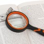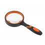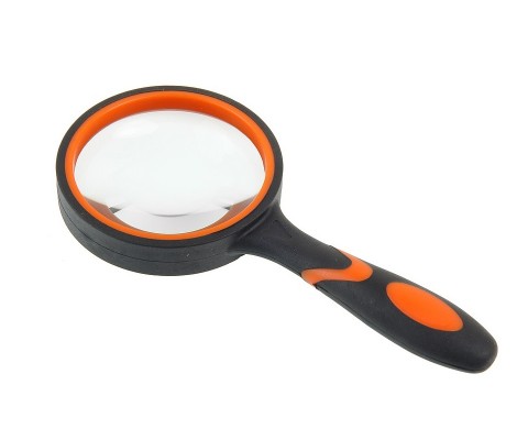 Корпус лупы изготовлен из пластика. Нарядные ручка и оправа обрезинены (покрытие софт-тач). Ручка имеет удобную форму и не выскользнет из руки во время работы. Длина ручки 89 мм. Линза изготовлена из оптического стекла — она не поцарапается при небрежном обращении и позволяет получать яркое изображение без искажений по краям поля зрения.