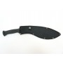 Рукоятка мачете небольшая по сравнению с клинком, она выполнена из пластика, мелкое рифление на ее поверхности помогает надежно удерживать нож в процессе работы. Имеется отверстие для темляка. Общая длина мачете – 44 см. Изделие поставляется с нейлоновым чехлом.
