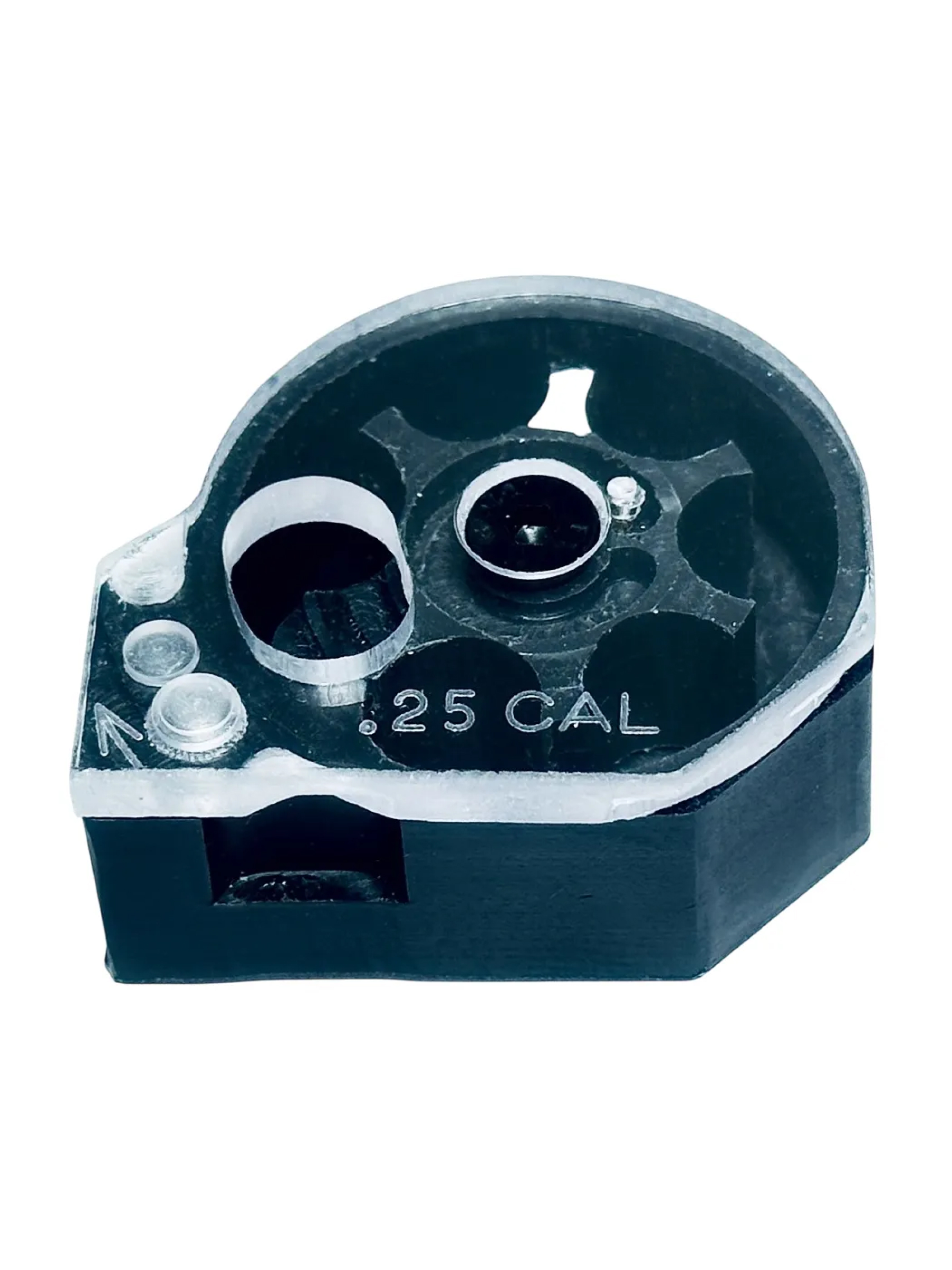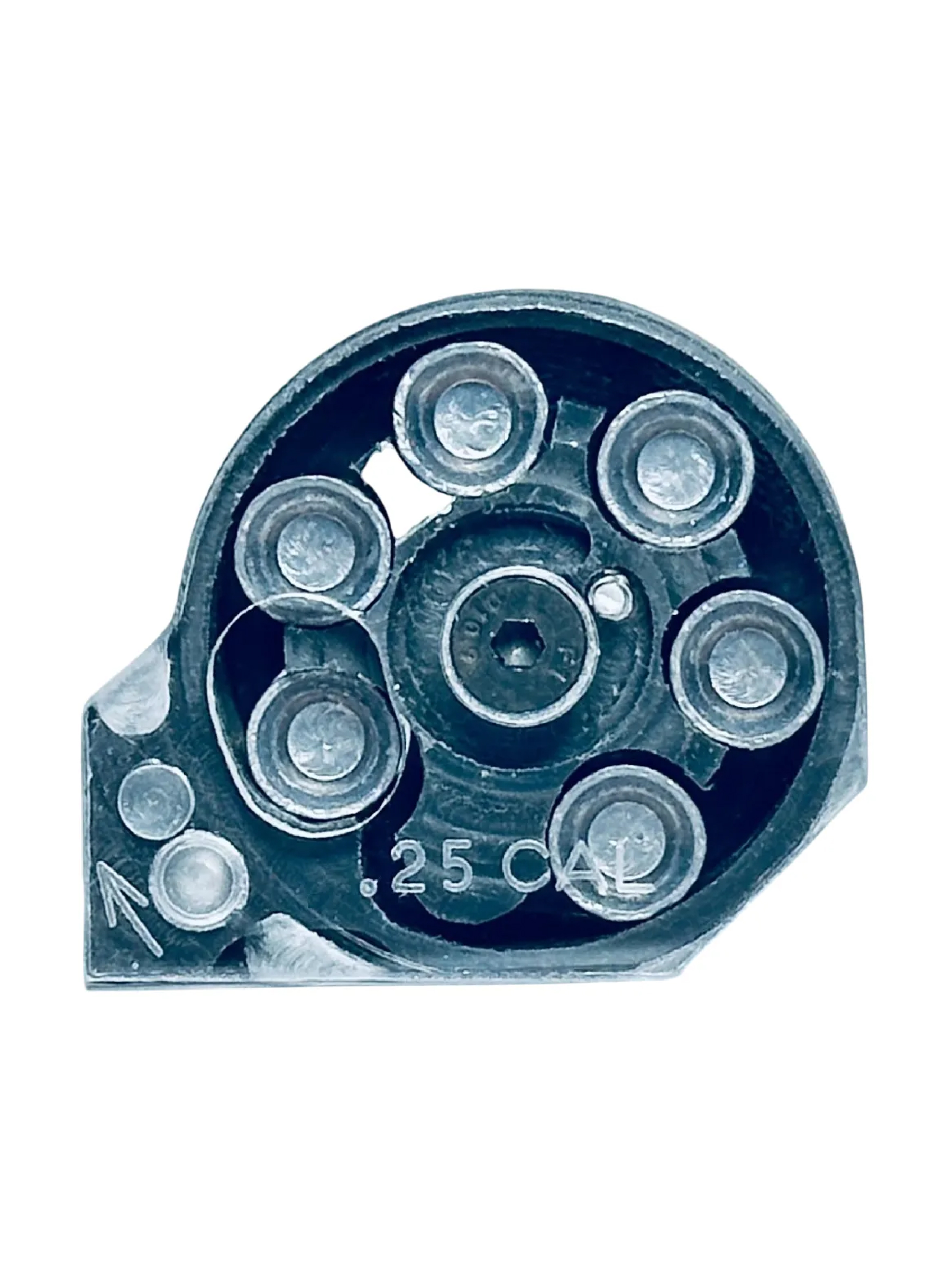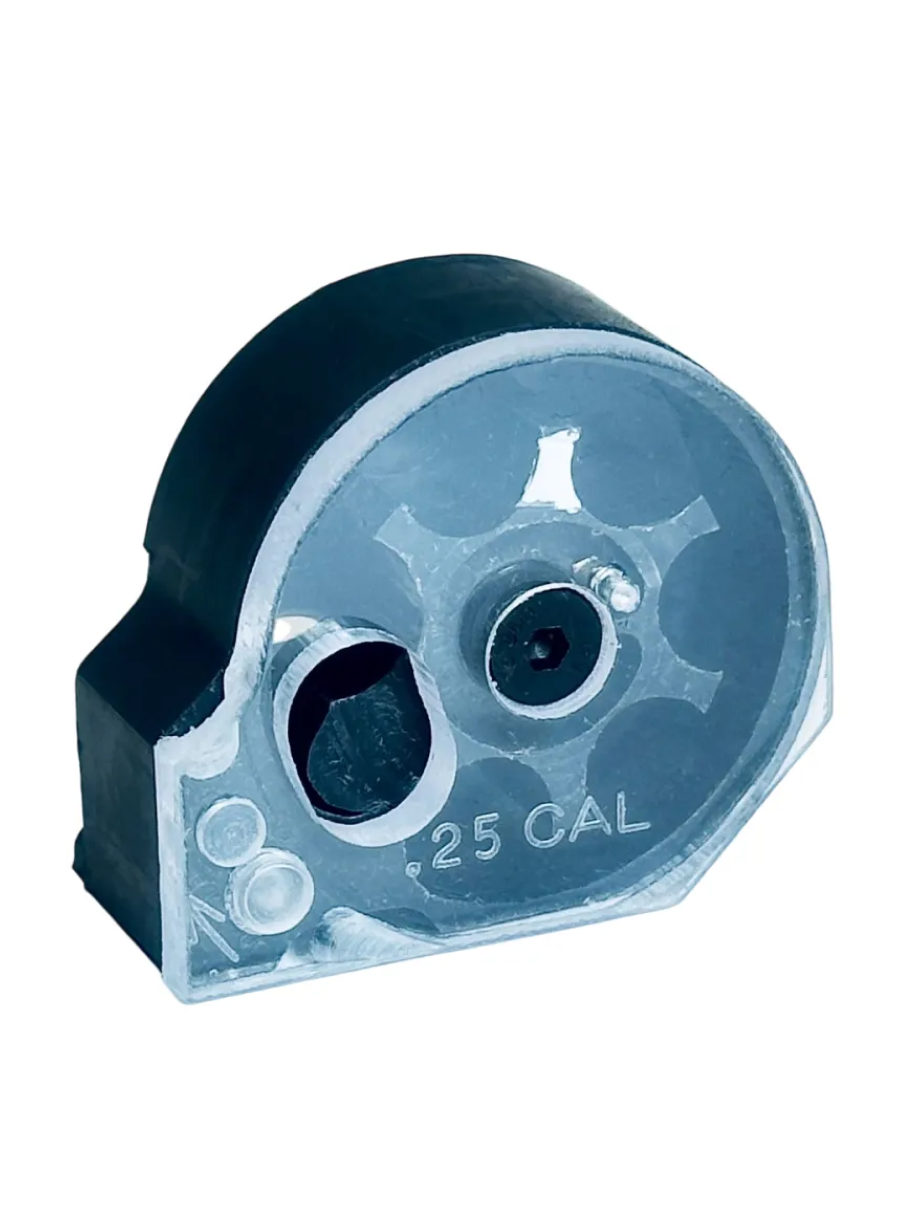 Автоматический запасной магазин барабанного типа формата Марадер для пневматических PCP-винтовок. Предназначен для заряжания пулями, калибра 6,35 мм, вместимость составляет 6 пуль.