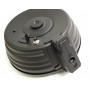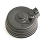Магазин электрический C38 АК от компании CYMA. Модель – бубен, форма – усеченный конус. Имеет также металлический корпус вместимостью 2800 шаров. Рассчитан на применение на пулеметных приводах АК-серии. Магазин массой 770 граммов изготовлен из металла, окрашенного в черный цвет. Работает от электрических батареек.