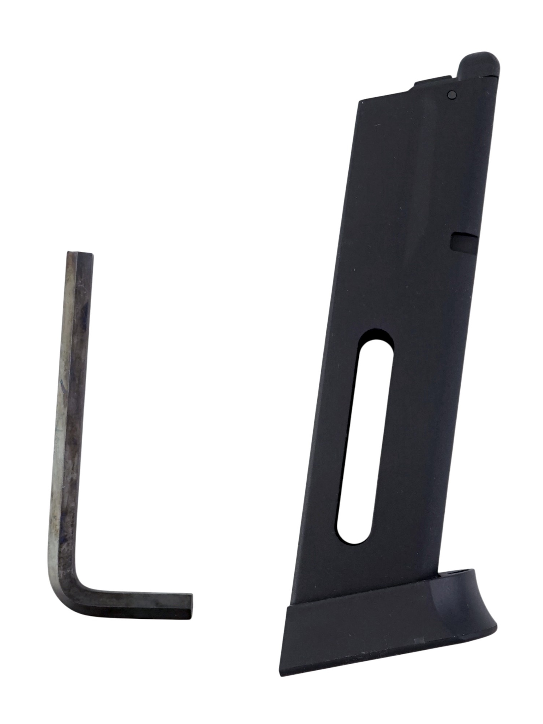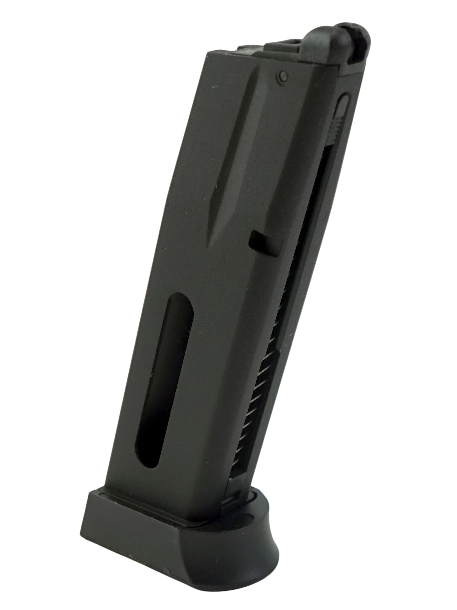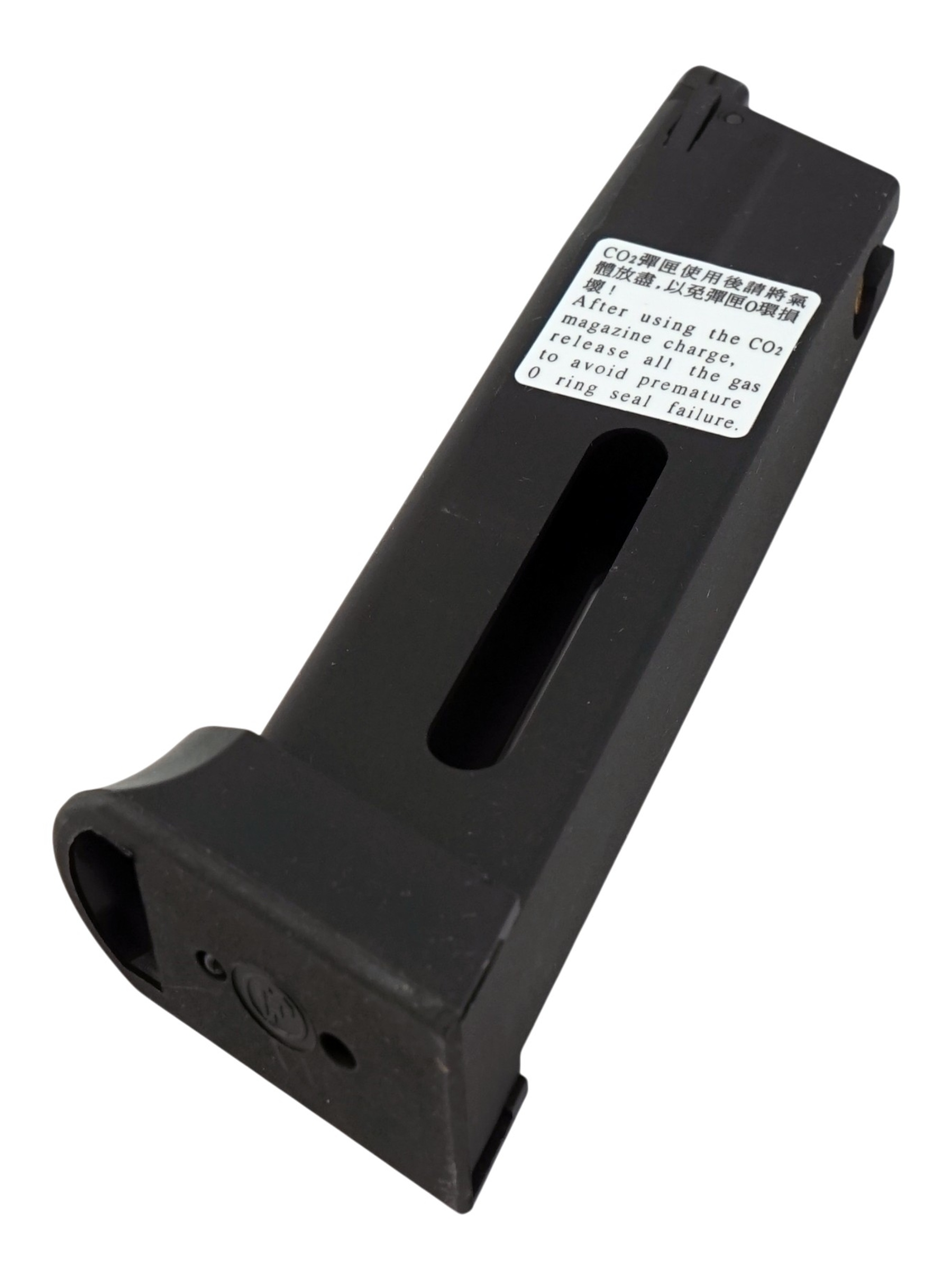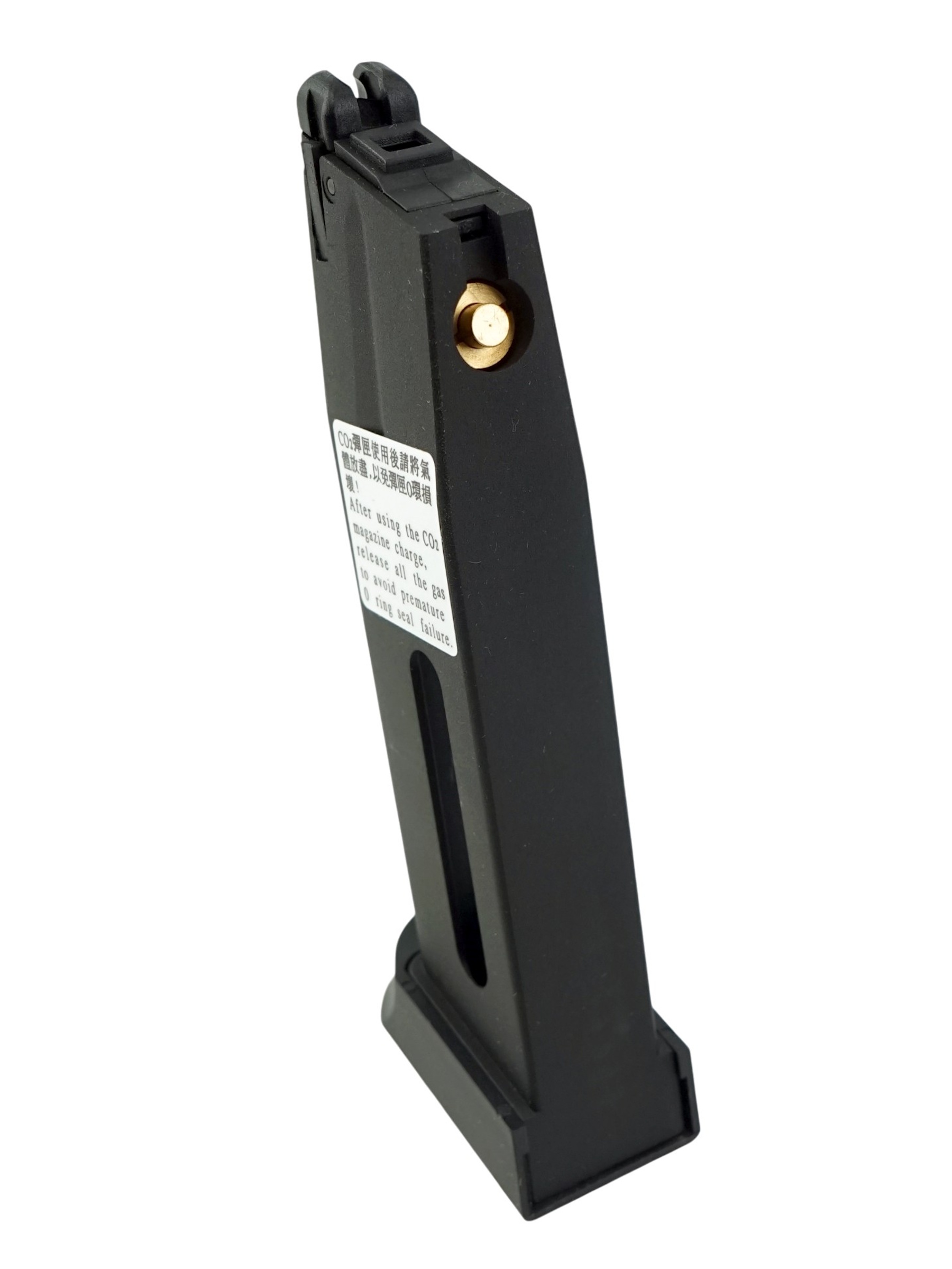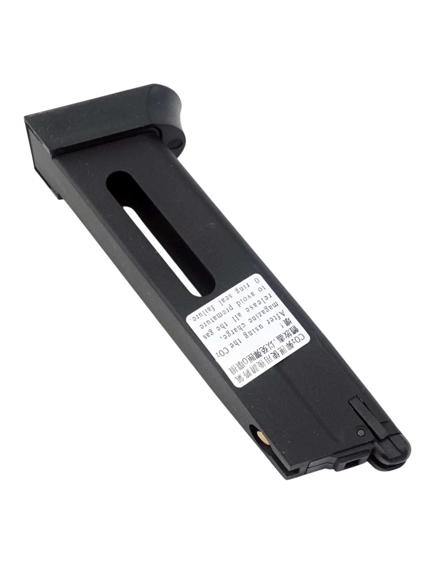 Магазин механического типа, от компании KJW, предназначен для использования со страйкбольными пистолетами модели SP-01 того же производителя. Магазин на углекислом газе (CO₂), корпус выполнен из металла, вмещает 26 шаров.