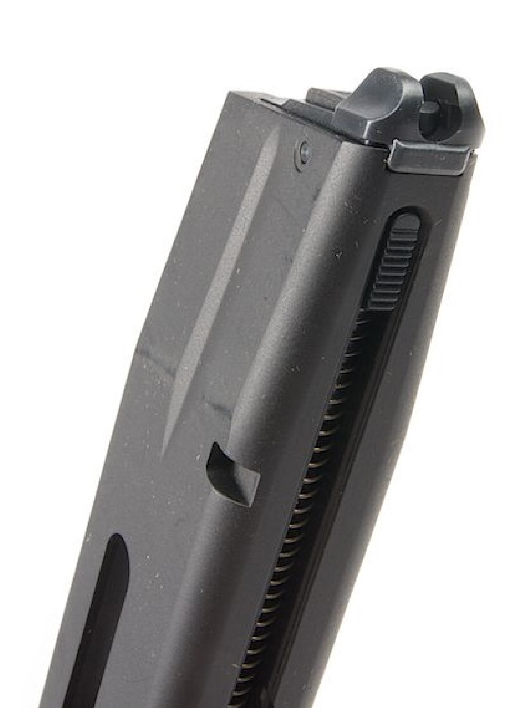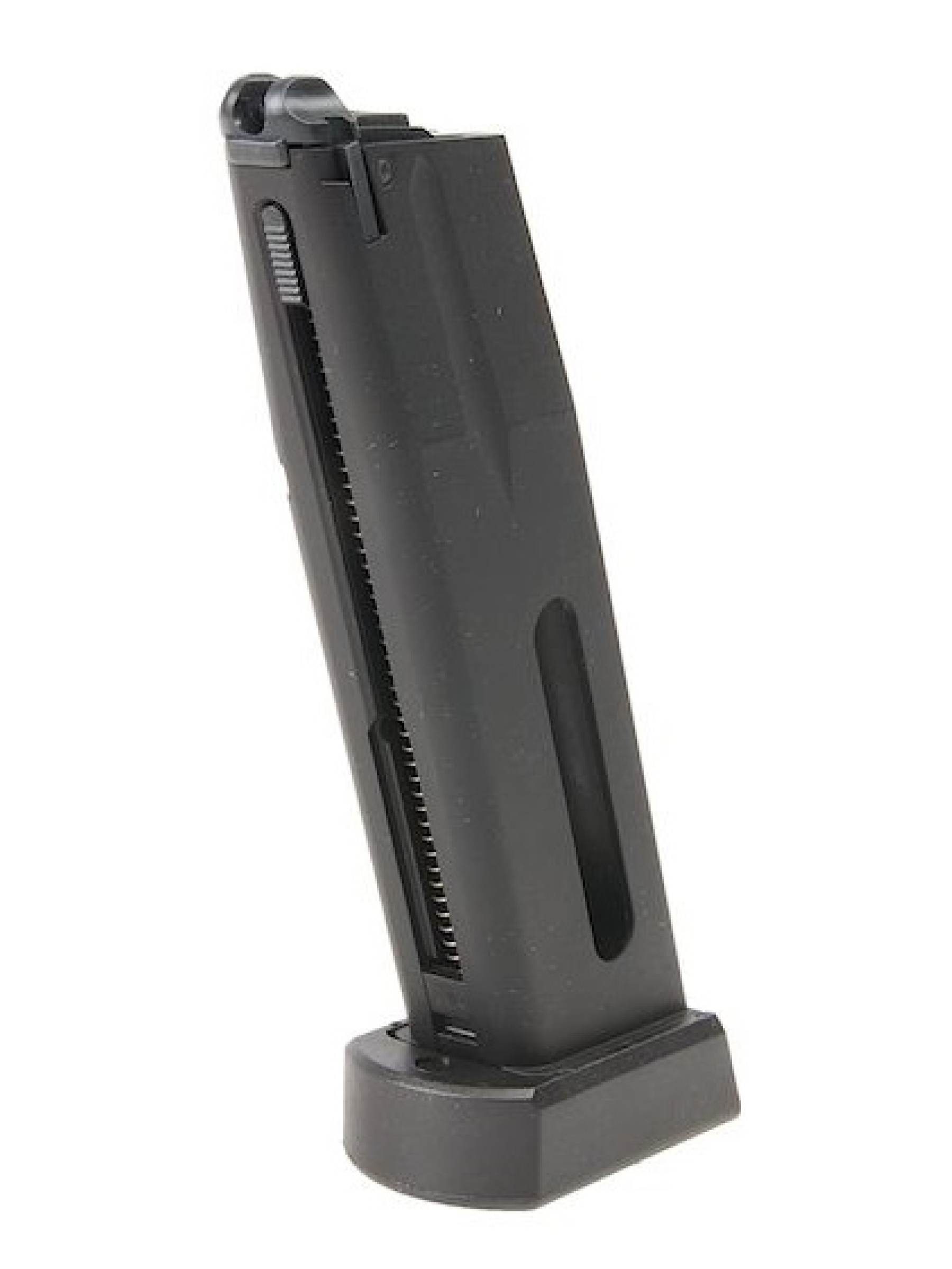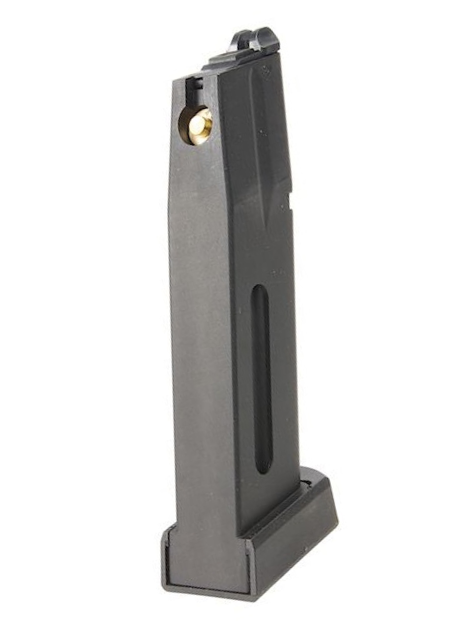 Запасной магазин для пневматического пистолета KP-09 CZ-75 - полноразмерный, с отсеком для заряжания баллончиком CO2. Обойма вмещает 17 шариков, позволяет повысить темп стрельбы для перезарядки газобаллонного KJW KP-09.