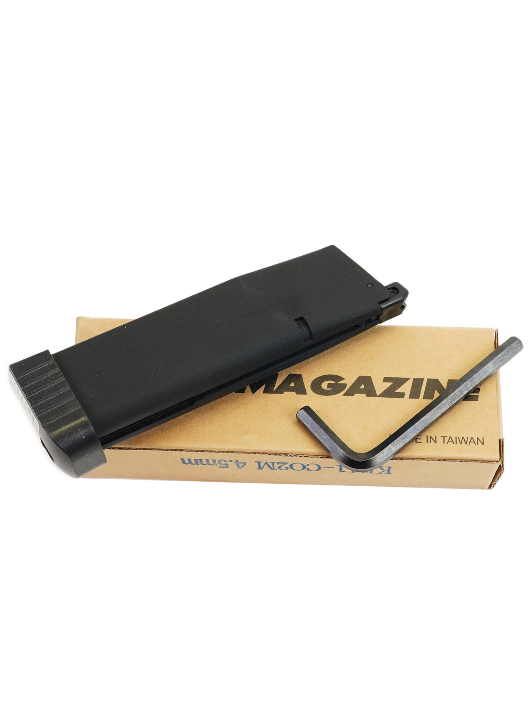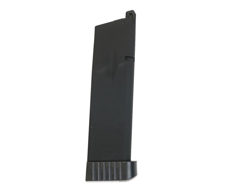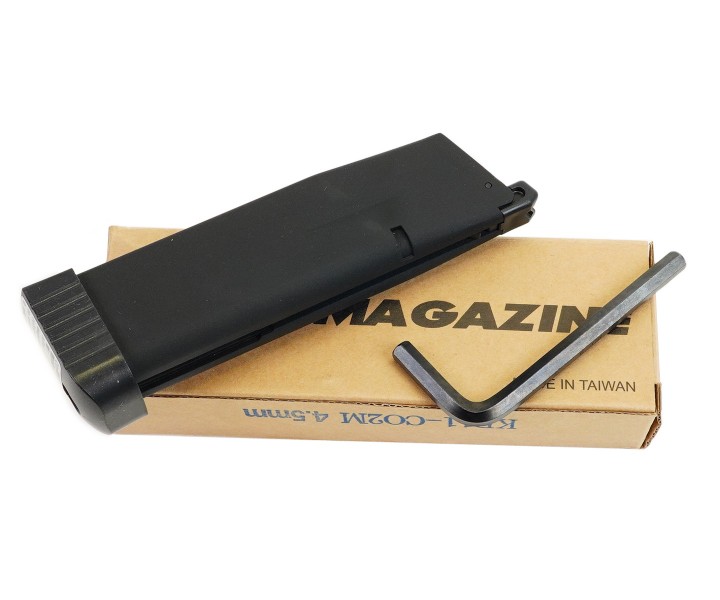Запасной магазин для пневматического пистолета KP-11 Colt Hi-Capa - полноразмерный, с отсеком для заряжания баллончиком CO2. Обойма вмещает 17 шариков, позволяет повысить темп стрельбы для перезарядки газобаллонного KJW KP-11.
