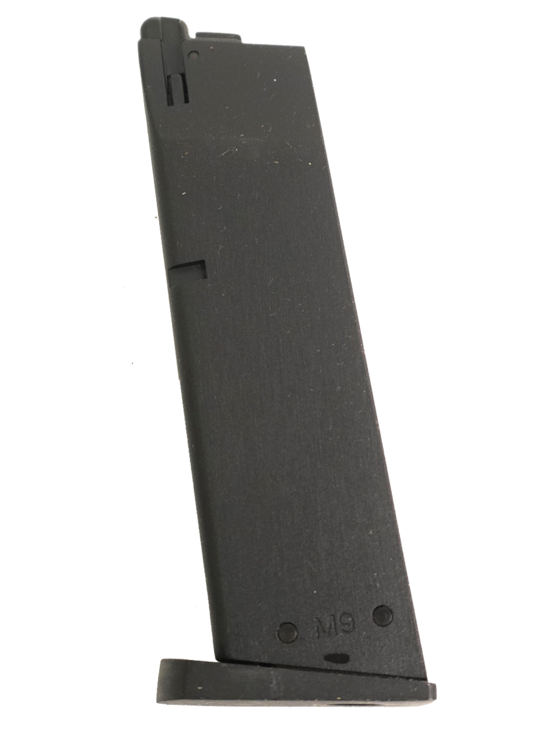 Запасной магазин для страйкбольного пистолета KJW Beretta M9 Gas (на грин-газе), вместимость составляет 25 шариков. Подходит также и для аналогичных моделей пистолетов фирмы WE.