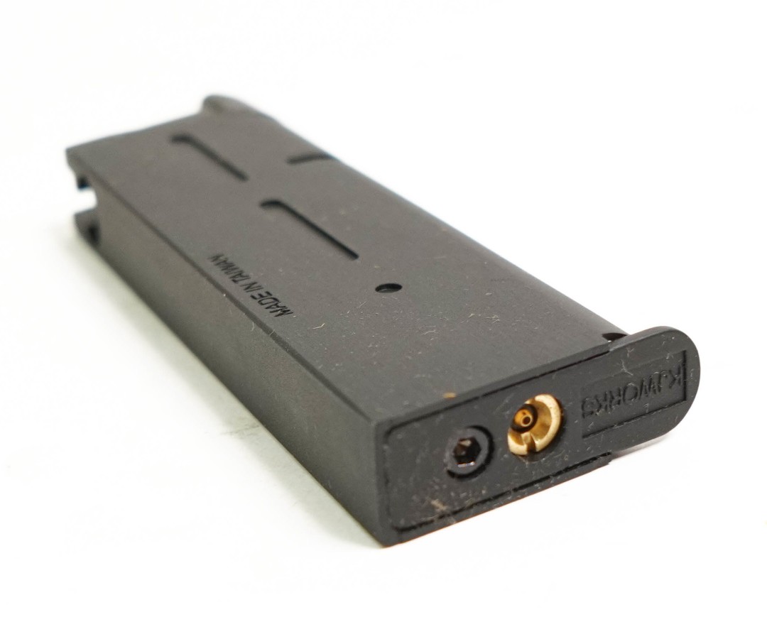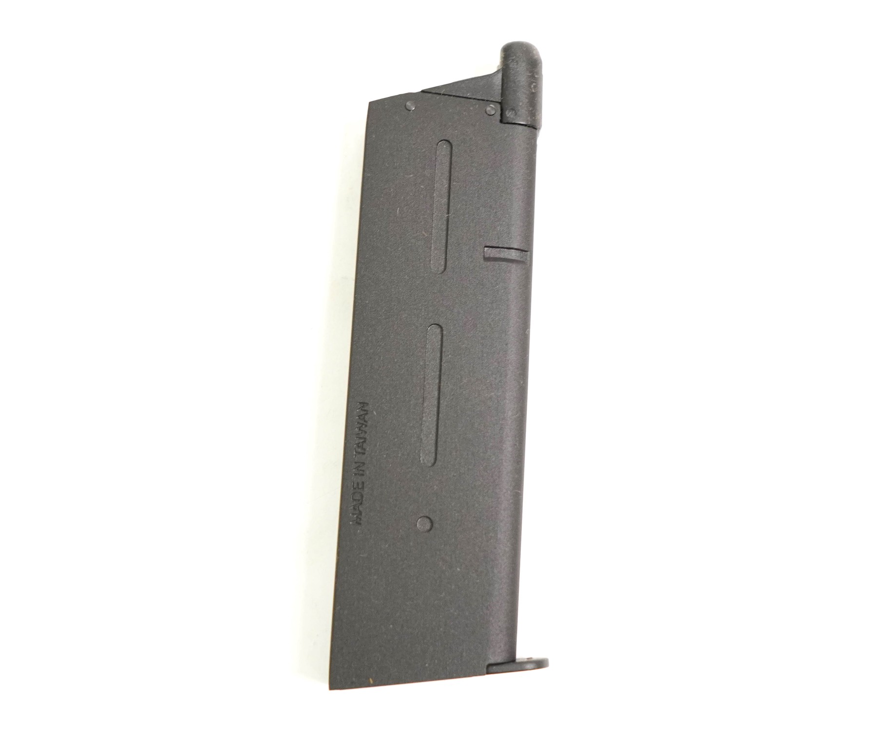 Запасной магазин для страйкбольного пистолета KJW Colt M1911 Gas (на грин-газе), вместимость составляет 25 шариков. Подходит также и для аналогичных моделей пистолетов фирмы WE.