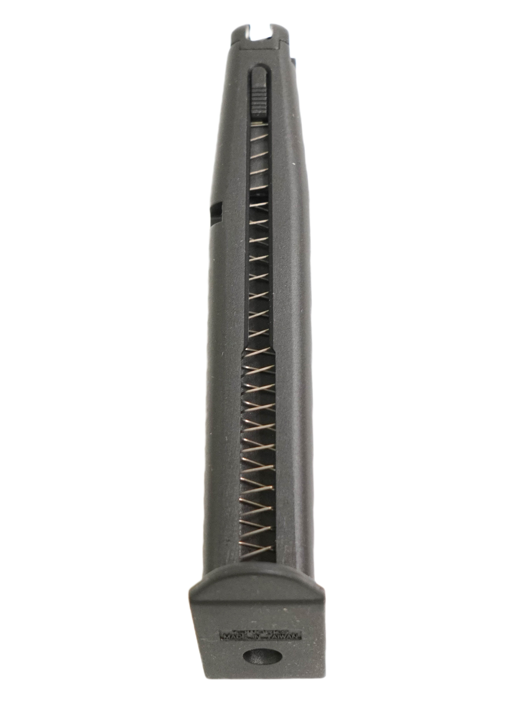 Запасной магазин для страйкбольного пистолета KJW CZ-75 Gas (на грин-газе), вместимость составляет 24 шариков. Подходит также и для аналогичных моделей пистолетов фирмы WE.