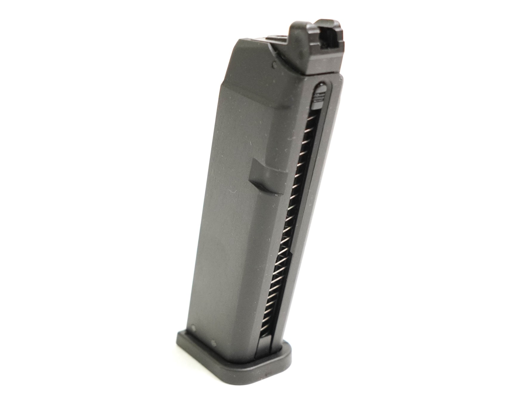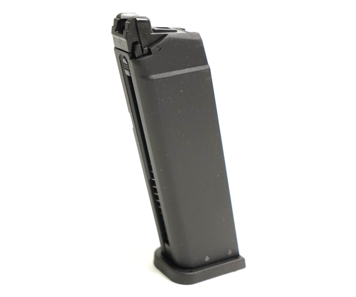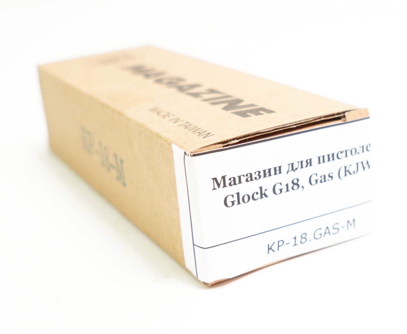 Запасной магазин для страйкбольного пистолета KJW Glock G18 Gas (на грин-газе), вместимость составляет 22 шарика. Подходит также и для аналогичных моделей пистолетов фирмы WE.