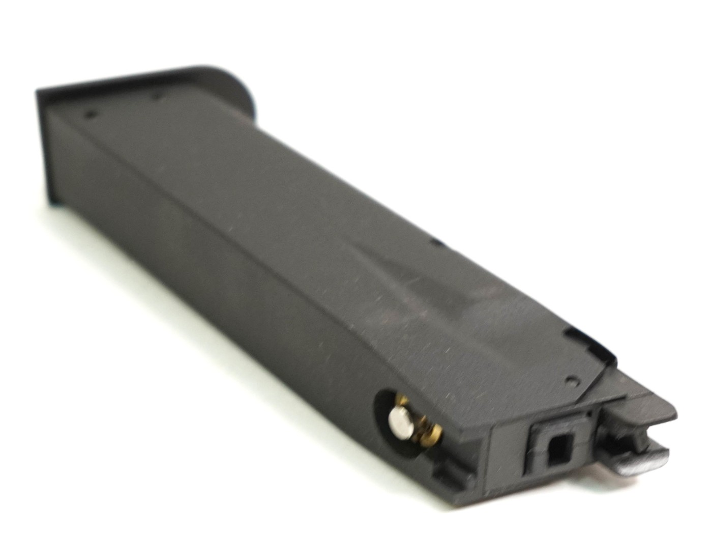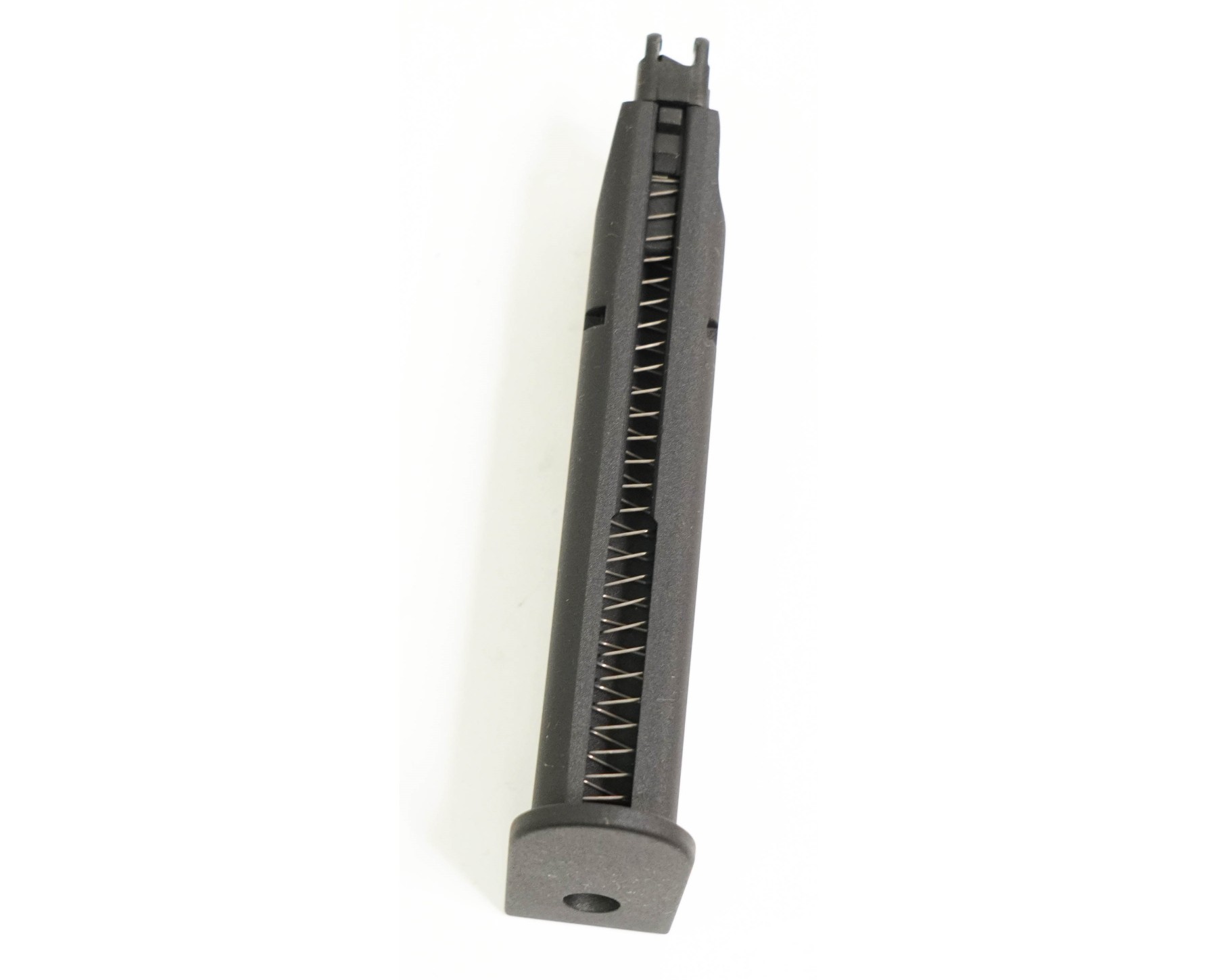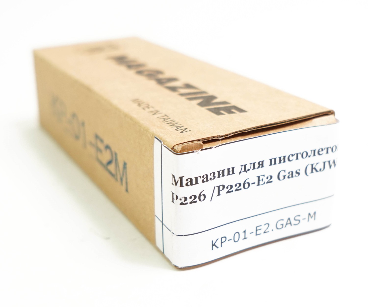 Запасной магазин для страйкбольного пистолета KJW SigSauer P226E2 Gas (на грин-газе), вместимость составляет 24 шариков. Подходит также и для аналогичных моделей пистолетов фирмы WE.