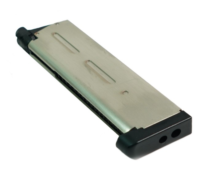 Запасной магазин для страйкбольного пистолета Colt M1911 MEU (на грин-газе), вместимость составляет 28 шариков.