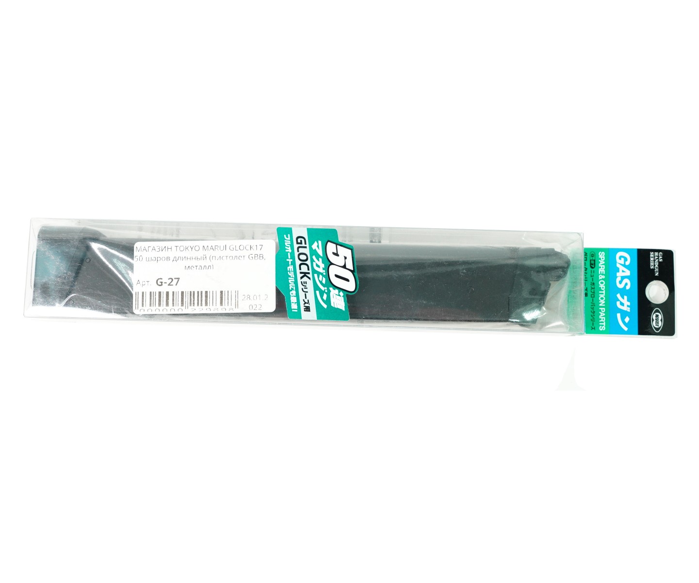 Запасной магазин длинный для страйкбольного пистолета Glock 17 (на грин-газе), вместимость составляет 50 шариков.