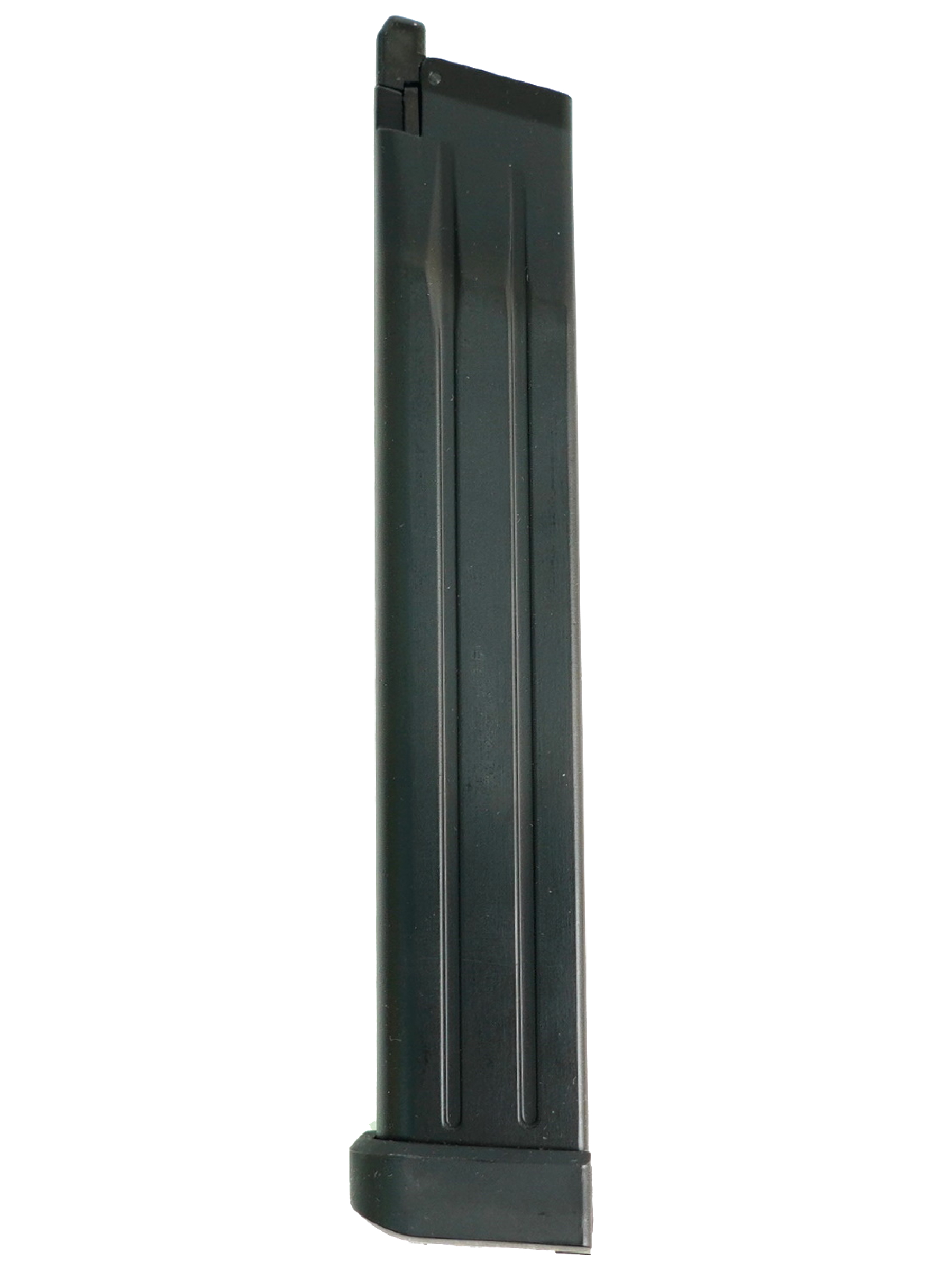 Запасной магазин длинный для страйкбольного пистолета WE 1911 Hi-Capa 5.1 (на грин-газе), вместимость составляет 50 шариков. Подходит также и для аналогичных моделей пистолетов фирмы KJW.