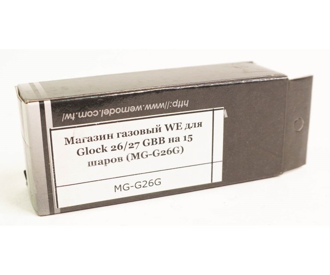 Запасной магазин для страйкбольного пистолета WE Glock-26 /27 (на грин-газе), вместимость составляет 15 шариков. Подходит также и для аналогичных моделей пистолетов фирмы KJW.