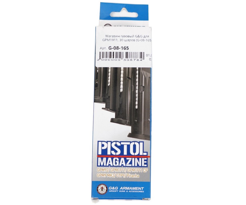 Механический магазин повышенной вместимости для использования со страйкбольным пистолетом модели G&G GPM1911 (Colt 1911). Магазин на грингазе (green gas), выполнен из металла, вмещает 30 шаров.