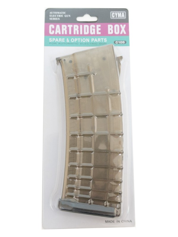 Магазин механический для приводов АК-серии от компании Cyma (Китай). Полностью выполнен из ударопрочного пластика, обладает ребристым внешним покрытием для удобства удержания. Вмещает 150 шариков.