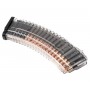 Рассчитан на 30 мест. Прозрачное исполнение позволяет контролировать кол-во оставшихся патронов. Кроме шероховатой поверхности, внешние стенки покрыты рисунком-протектором, не дающим магазину скользить в руках.