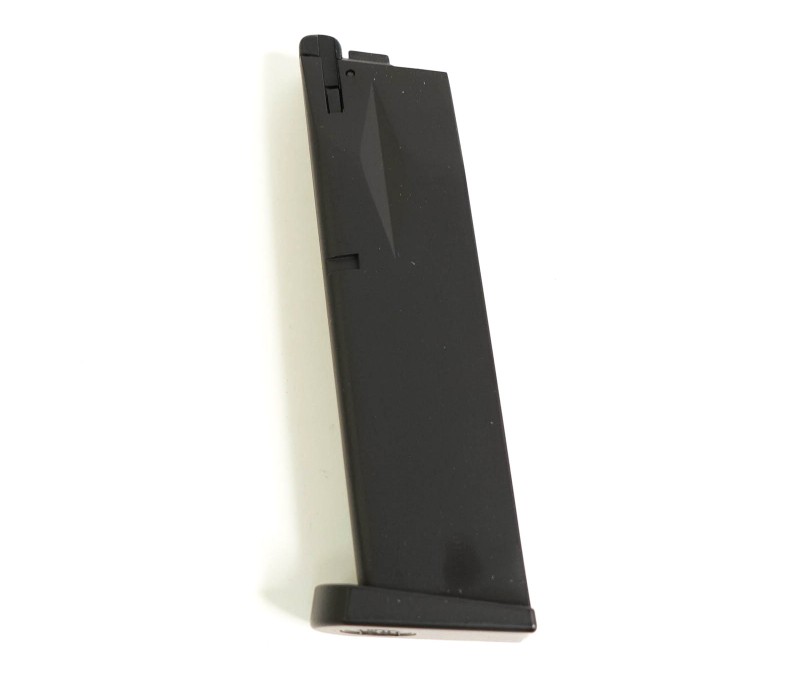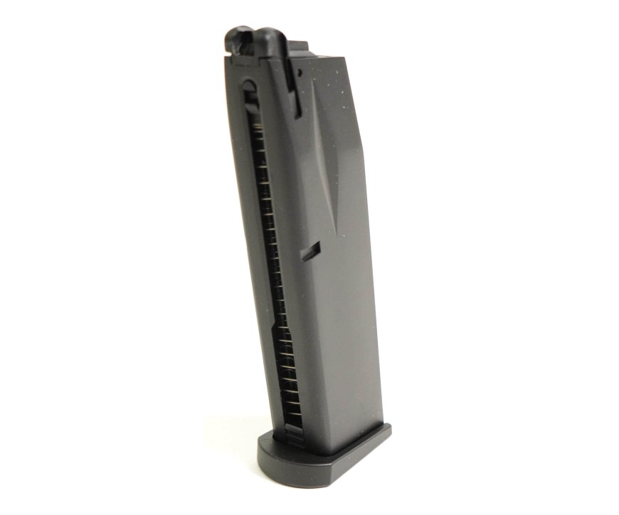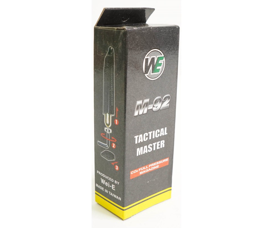 Запасной магазин для страйкбольного пистолета WE M92 (на углекислом газе), вместимость составляет 25 шариков. Подходит также и для аналогичных моделей пистолетов фирмы KJW.