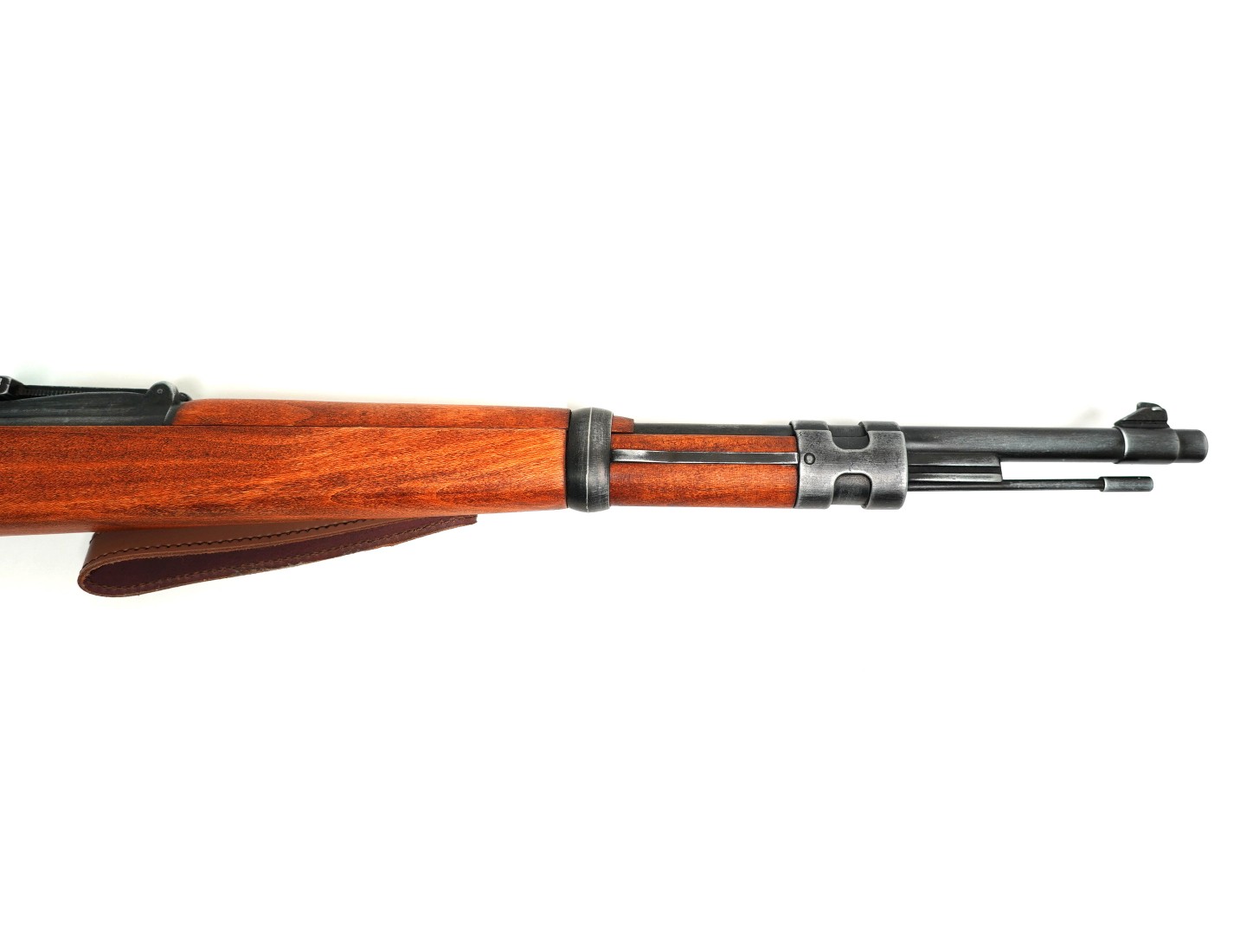 Макет карабин Маузер К-98 – полноразмерная копия оружия, изготовленного в точном соответствии с реальным боевым прототипом. Маузер К-98 представляет собой легендарное оружие времен Второй мировой войны, принятое на вооружение армией Вермахта в 1935 году. Данная модификация является укороченным вариантом Mauser 98, буква K как раз и обозначает «короткий» (с немецкого Kurz).