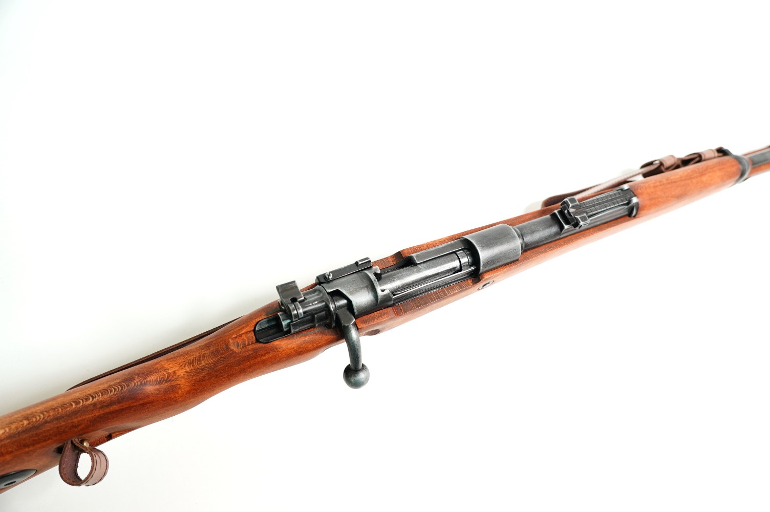 Согласно российскому законодательству, купить макет Маузера К-98 можно без лицензии и разрешения, однако следует учитывать, что внесение в его конструкцию изменений с целью ведения стрельбы любыми баллистическими боеприпасами уголовно наказуемо. Макет Маузера К-98 станет отличным подарком для любителей оружия, заинтересует историков, коллекционеров и тех, кто увлекается военно-историческими реконструкциями. Затвор взводится, щелкает.