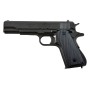 Макет пистолет Colt M1911A1, .45 калибра, пластик. рукоять (США, 1911 г.) DE-1316 – это изделие на базе прославленного Кольт М1911, самого известного оружия двух мировых войн и множества военных конфликтов. Изделие выполнено испанским производителем, и отличается достойным качеством исполнения и аутентичностью внешнего вида. Конструкция макета позволяет имитировать и механизм заряжания, и взведение, и спуск курка, и сам выстрел. Магазин не съемный, УСМ макета подвижный.