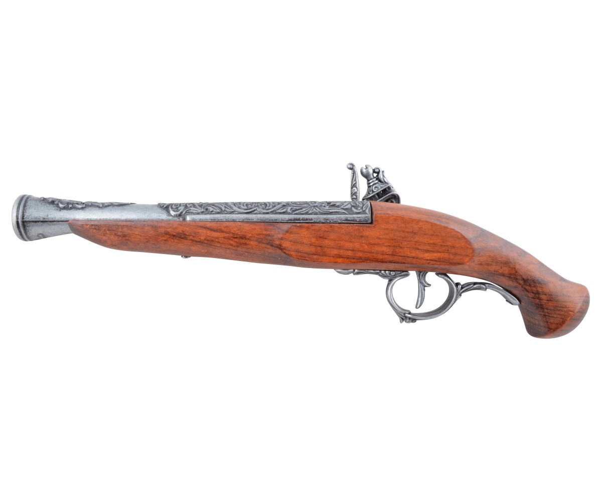Макет немецкий кремниевый пистолет 17 века – оригинальное украшением дома, пополнит коллекцию реплик оружия прошлого и будет незаменимым элементом для любителей косплея и реконструкций.