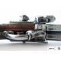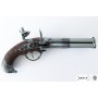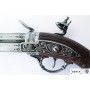 Макет пистолет кремневый трехдульный (Франция, XVIII век) DE-1306 – это модель реального многозарядного оружия револьверного типа, разработка мастеров Denix. Изделие выполнено с высочайшей точностью, в самых мелких деталях копируя историческое оружие Франции 18 века. Главная особенность пистолета – три дула, соединенные в единый вращающийся ствол. За счет этого пистолет становится трехзарядным, что повышает его возможности и увеличивает темп стрельбы. Макет способен имитировать процессы заряжания и выстрела. Ведение боевого огня из этого макета в принципе невозможно.