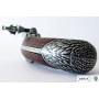 Макет выполнен из сплава металла, долговечного и хорошего качества. Изделие богато украшено орнаментом и декоративными элементами. Так, на затыльнике рукоятки – украшение в виде головы орла, которое носит не только декоративное назначение, но и функциональное, так как рукоятку в критических ситуациях использовали как мини-дубинку. И ствол, и кремниевый замок также украшены орнаментом. Вес макета 1,06 кг, длина 30 см.