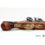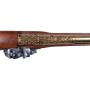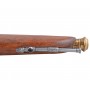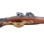 Макет пистолет кремниевый, Англия изготовленный специалистами испанского бренда Denix, представляет собой великолепный образец стрелкового орудия 18 века. Все его детали выполнены в точном соответствии с оригинальными экземплярами того времени. При производстве макета использовался металлический сплав замак, латунь и натуральное дерево. Оружие отличается великолепным внешним видом, выглядит эффектно и очень достойно. Вес макета соответствует оригиналу, и составляет 0,57 кг. В верхней части деревянного ложе расположены стальные декоративные элементы, повторяющие растительные мотивы. Ствол имеет округлое сечение, под стволом закреплен обязательный элемент – шомпол. Ударно-кремниевый замок сложной конфигурации, и напоминает змею. Рукоятка украшена инкрустацией. УСМ функционирует, делая копию более реалистичной.