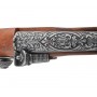 Макет пистолет кремниевый (Франция, 1872 г.) от мастеров испанской компании сувенирного оружия Denix является великолепным образцом ручной работы. Использованием цинкового сплава замак придает реплике необходимую прочность, сталь применена в данном случае в качестве материала для украшения пистолета. Ложе и рукоятка оружия выполнены из дерева. Верхняя часть ствола, а также основание кремниевого замка и рукоять украшены стальными накладками с эффектным орнаментом. Имеется шомпол, закрепленный, как и полагается, под стволом. Кремниевый замок и УСМ здесь функционирующие. Длина макета составляет 37 см, масса – 0,515 гр. Копия выглядит очень достойно и качественно, внешне практически не отличается от оригинала.