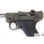 Макет пистолет Люгер Парабеллум P08 от испанской компании Denix отличается хорошим качеством исполнения и внешне максимально схожа на боевой прототип. Есть возможность передергивать затвор, спускать курок или вынуть обойму. Размеры, конфигурация и вес макета соответствуют оригиналу. Для производства этого экземпляра использован качественный сплав на основе цинка и пластик для рукоятки, со стилизацией под дерево.