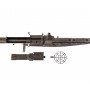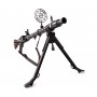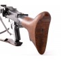 Имитация пулемета, выполненная из металла, дерева и пластика, с имитацией ударно-спускового механизма, подвижным сошками и кожаным ремнем.