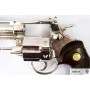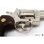 Макет револьвер Colt Python 6", под дерево (США, 1955 г.) DE-6304 – это реплика мощного револьвера двойного действия, выполненная специалистами бренда Деникс. Такое оружие было рассчитано на патроны Магнум.357, и выпускалось со стволами нескольких диаметров. Данный макет со стволом 4 дюйма имеет барабан-цилиндр с 6-ю каморами, он подвижный, т.е. откидывается и может вращаться. Ударно-спусковой механизм макета Кольт Питон также подвижен.