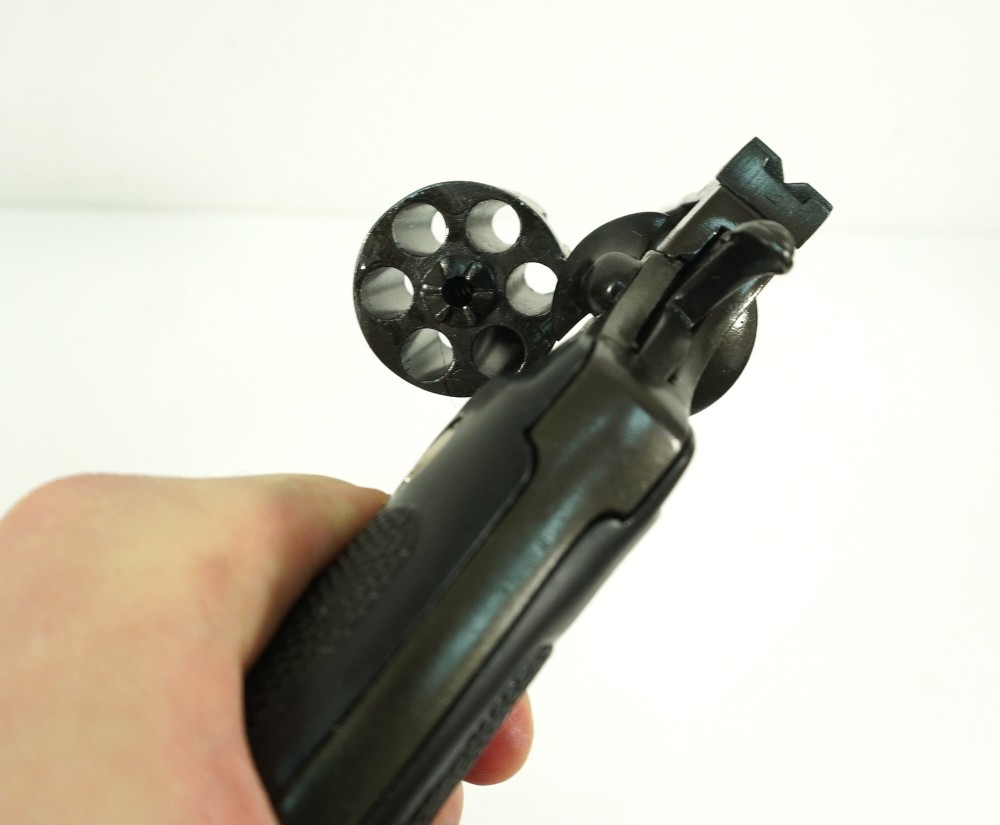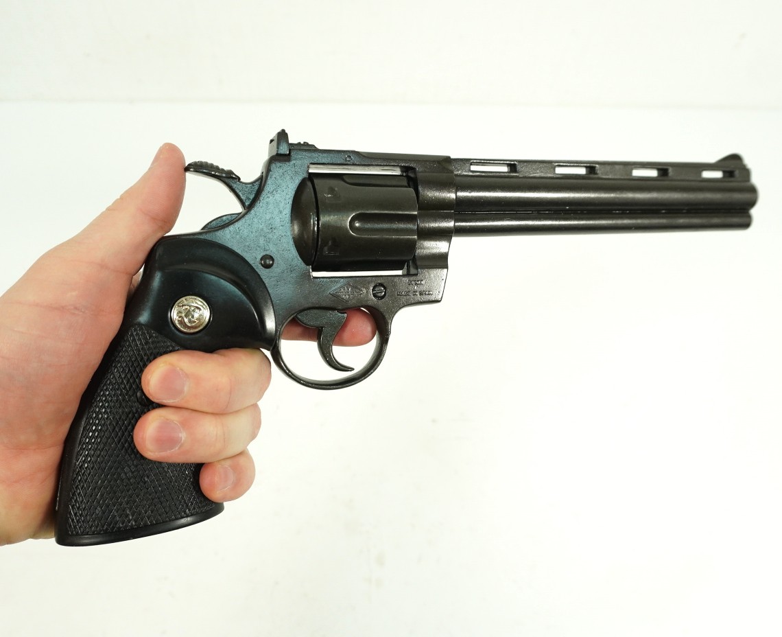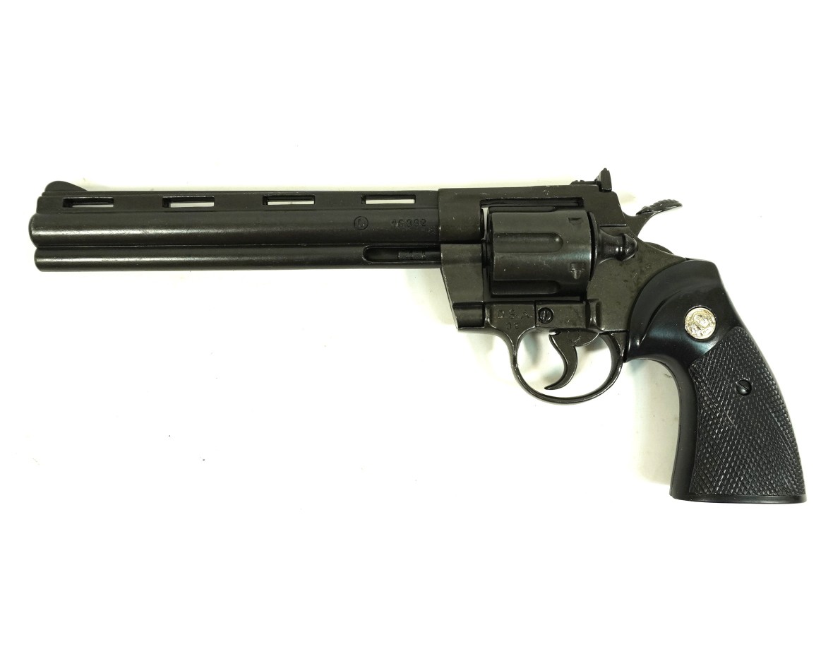 Самый огромный с 8-ми дюймовым стволом револьвер 357 Магнум Python (Python revolver 8") образца 1955 года. Выполнен из металла и пластиковыми накладками, с имитацией механизма зарядки и выстрела, а также с вращающимся барабаном.